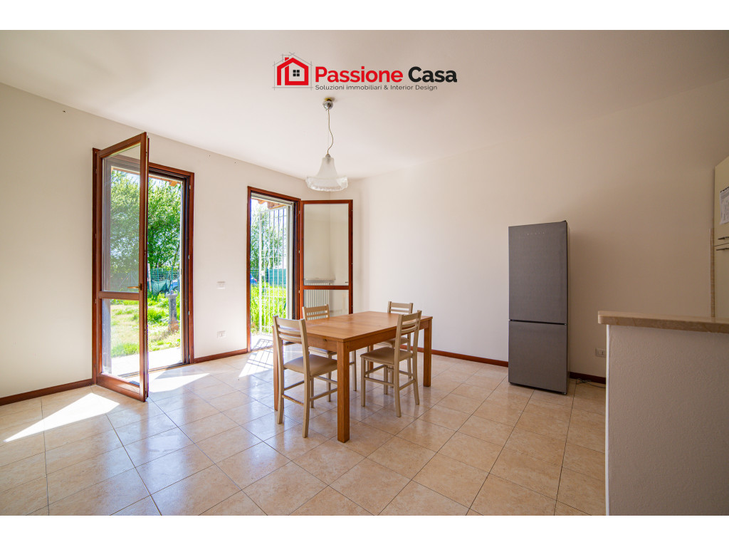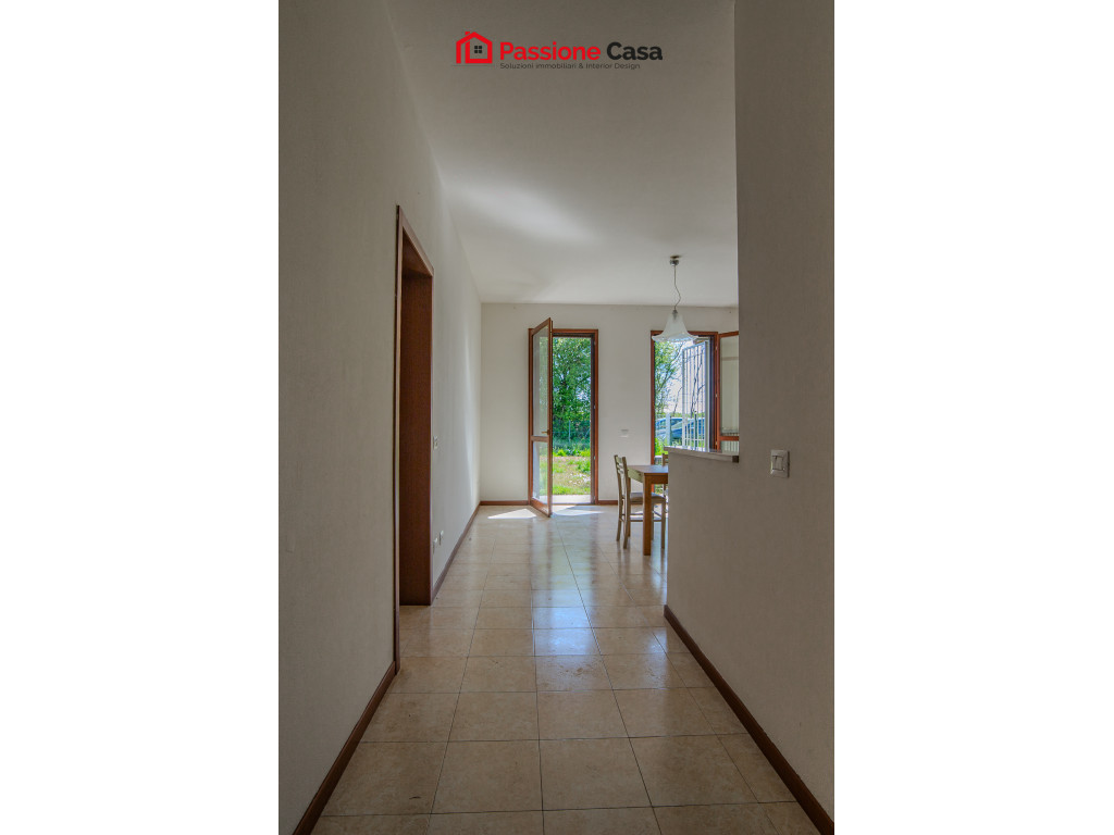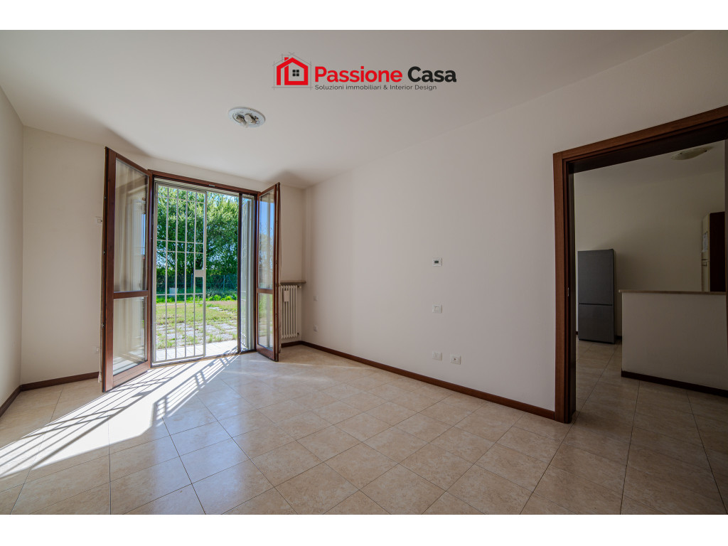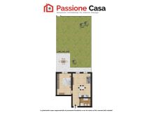 L’appartamento, di circa 64 mq commerciali, si apre su una luminosa zona giorno con angolo cottura, valorizzata dalla presenza di due porte finestre che permettono l'ingresso di luce, oltre che all'accesso diretto al giardino. Completa l'appartamento un bagno e un’ampia camera matrimoniale, anch’essa con porta finestra e uscita sul verde.