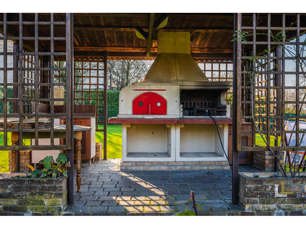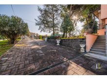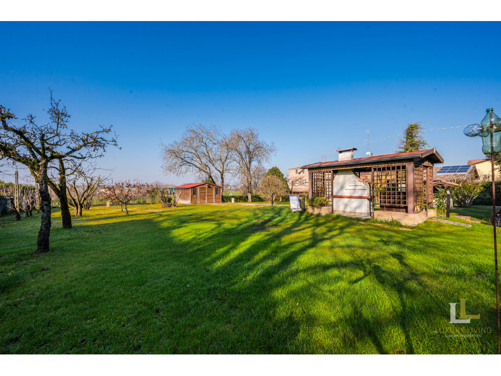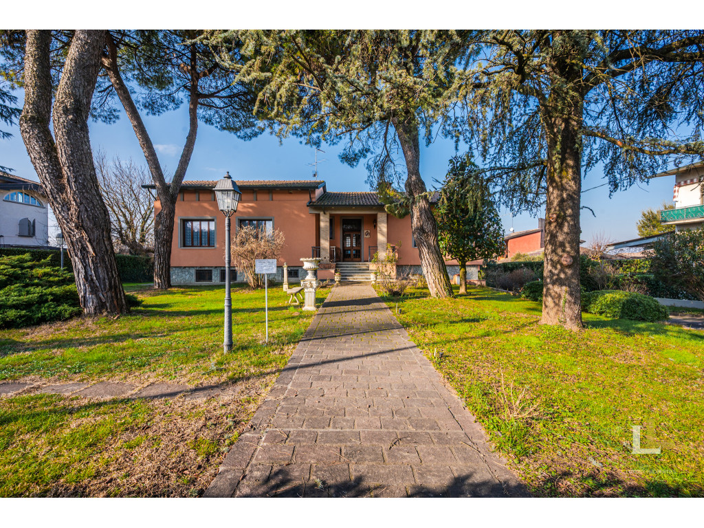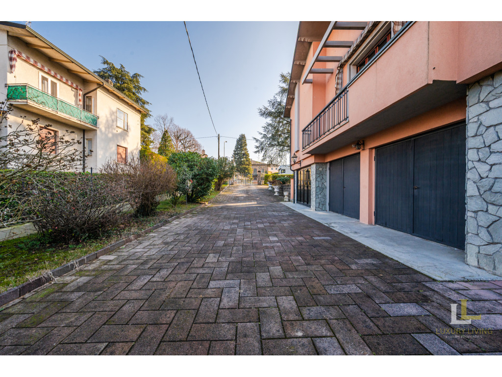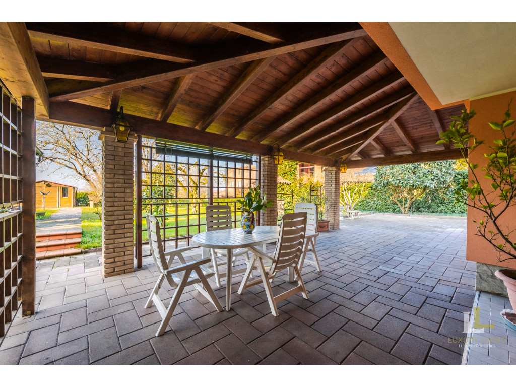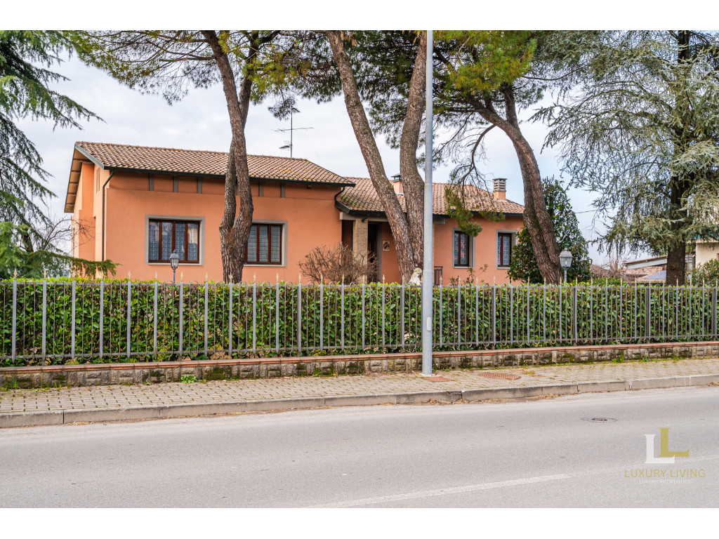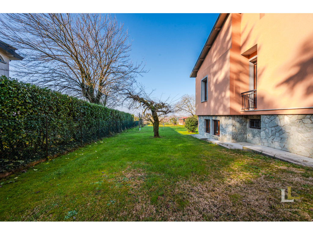 All’esterno, la villa è avvolta da un parco privato di circa 2.800 mq, un’oasi di tranquillità arricchita da un ampia zona manovra per le auto e da un portico ideale per godere appieno degli spazi all’aperto. L’accesso è comodo e riservato, sia pedonale che carraio, con cancello elettronico. L’immobile è dotato di impianto d’allarme e riscaldamento autonomo.