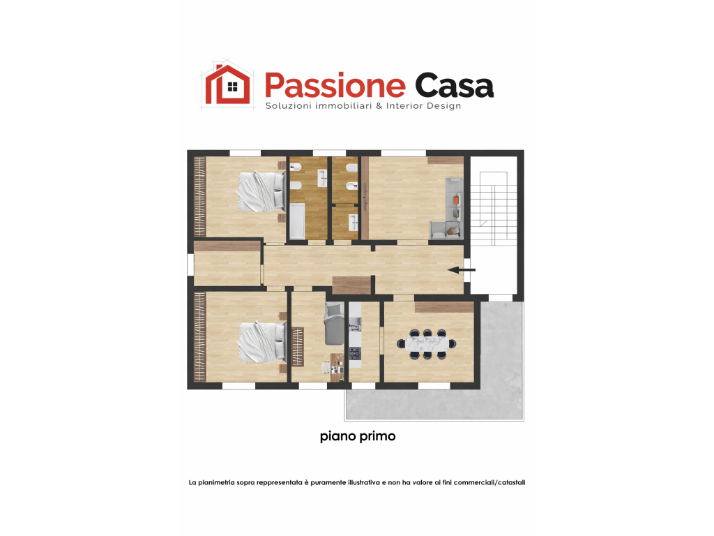 All’interno, ambienti luminosi e accoglienti si aprono su una planimetria funzionale e ben distribuita: otto camere da letto, cinque bagni, due cantine, due garage (di cui uno doppio).