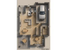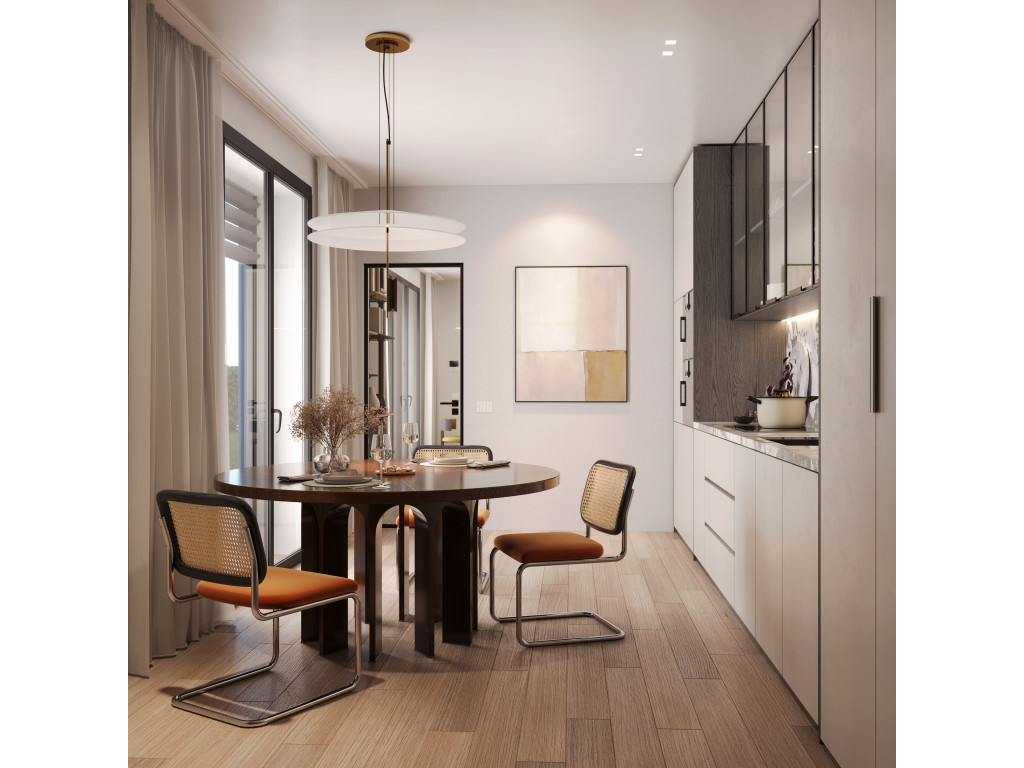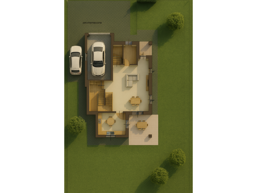 Al piano terra si accede attraverso un ingresso accogliente che si apre su un ampio soggiorno di 34 mq, luminoso e ben proporzionato, adiacente a una cucina abitabile di oltre 11 mq.