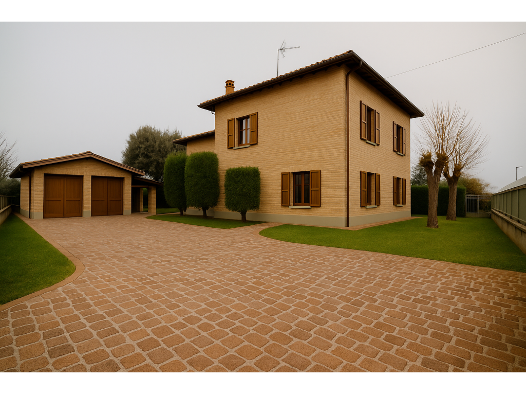 Completa la proprietà una rimessa esterna con due posti auto coperti.