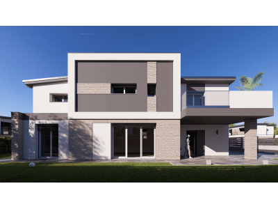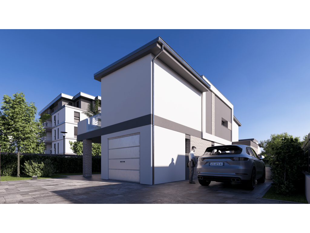 La villa si distingue per un’architettura moderna dalle linee pulite ed essenziali, capace di coniugare estetica e funzionalità in ambienti luminosi e perfettamente distribuiti. Il soggiorno, ampio e accogliente, si apre verso il giardino privato creando una naturale continuità tra interno ed esterno, ideale per vivere momenti di relax e convivialità in totale privacy. La cucina abitabile completa una zona giorno elegante e funzionale, mentre al piano superiore la zona notte offre spazi intimi e riservati, studiati per garantire benessere e tranquillità quotidiana. A completare la proprietà vi sono l’autorimessa privata integrata e un ulteriore posto auto interno esclusivo, elementi che aggiungono praticità e valore a una residenza già ricca di contenuti.