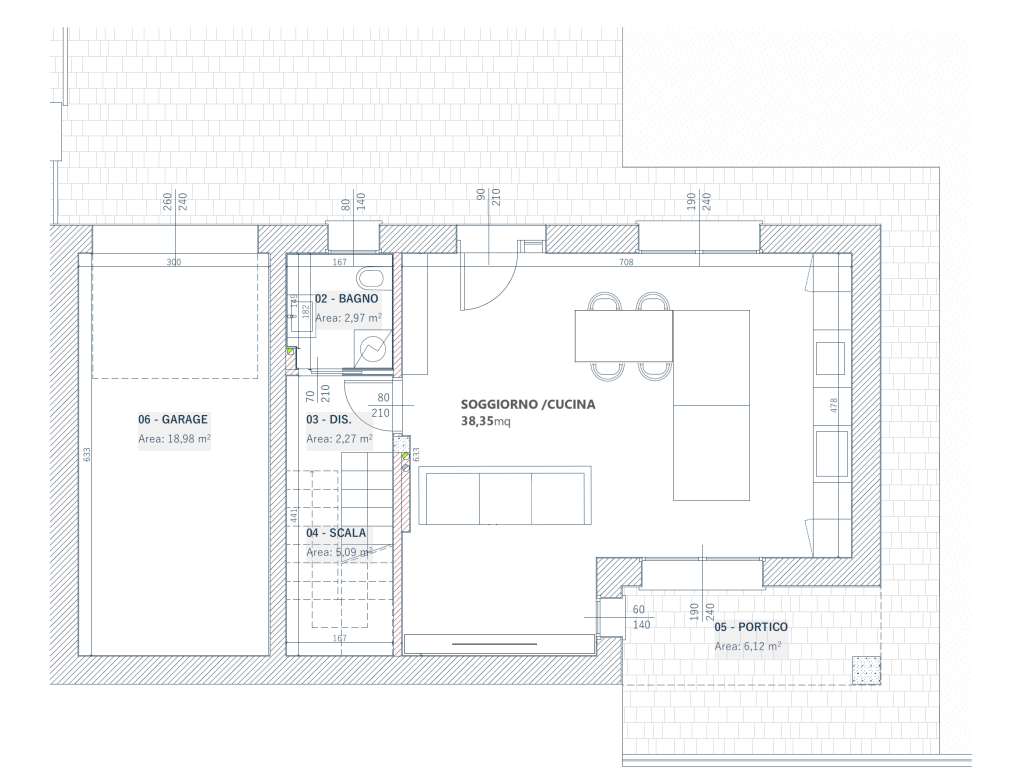 Il piano è completato da bagno di servizio e ampia autorimessa.