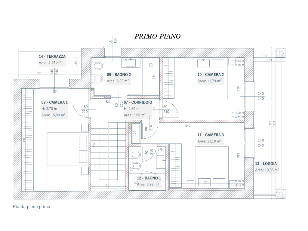 Salendo al primo piano, la zona notte offre tre camere da letto, tra cui una camera padronale con bagno privato e splendido terrazzo, ideale per iniziare la giornata con uno spazio esterno riservato.