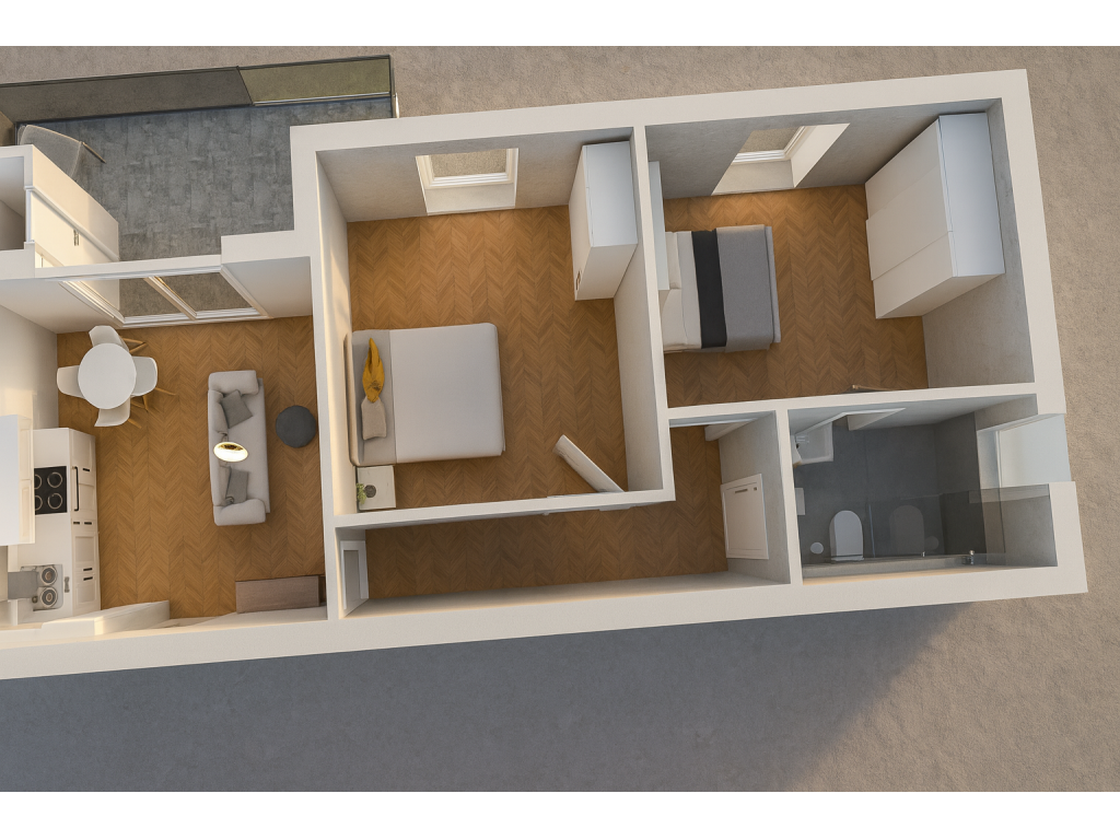 La superficie di 88 mq commerciali si apre su una zona giorno ampia e ben distribuita, con soggiorno ad angolo cottura affacciati su un terrazzo coperto di 14 mq, ideale per vivere all’aperto in ogni stagione.