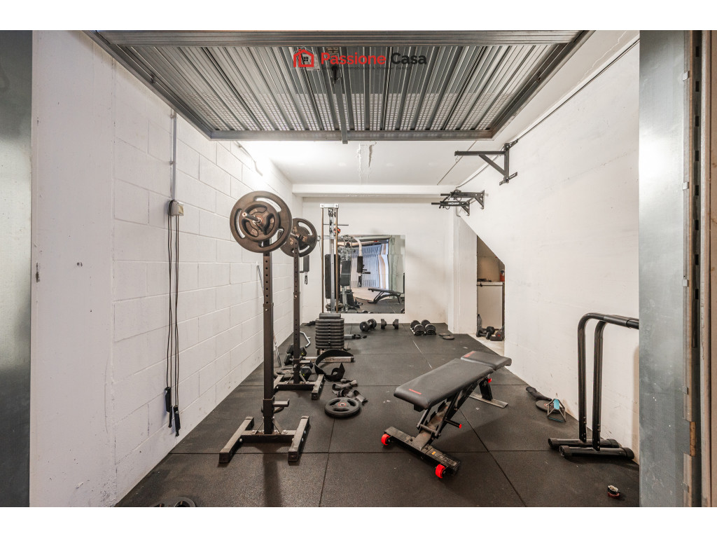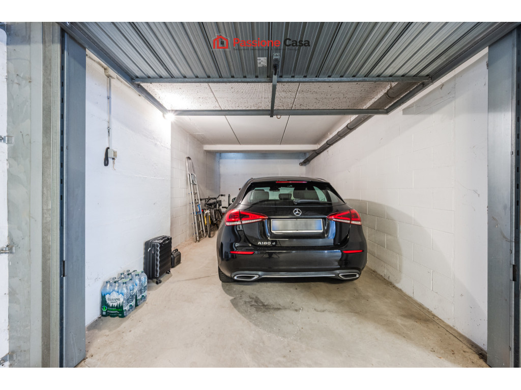 Completano la proprietà una cantina, un posto auto di proprietà e due ampi garage di 19 e 27 mq.