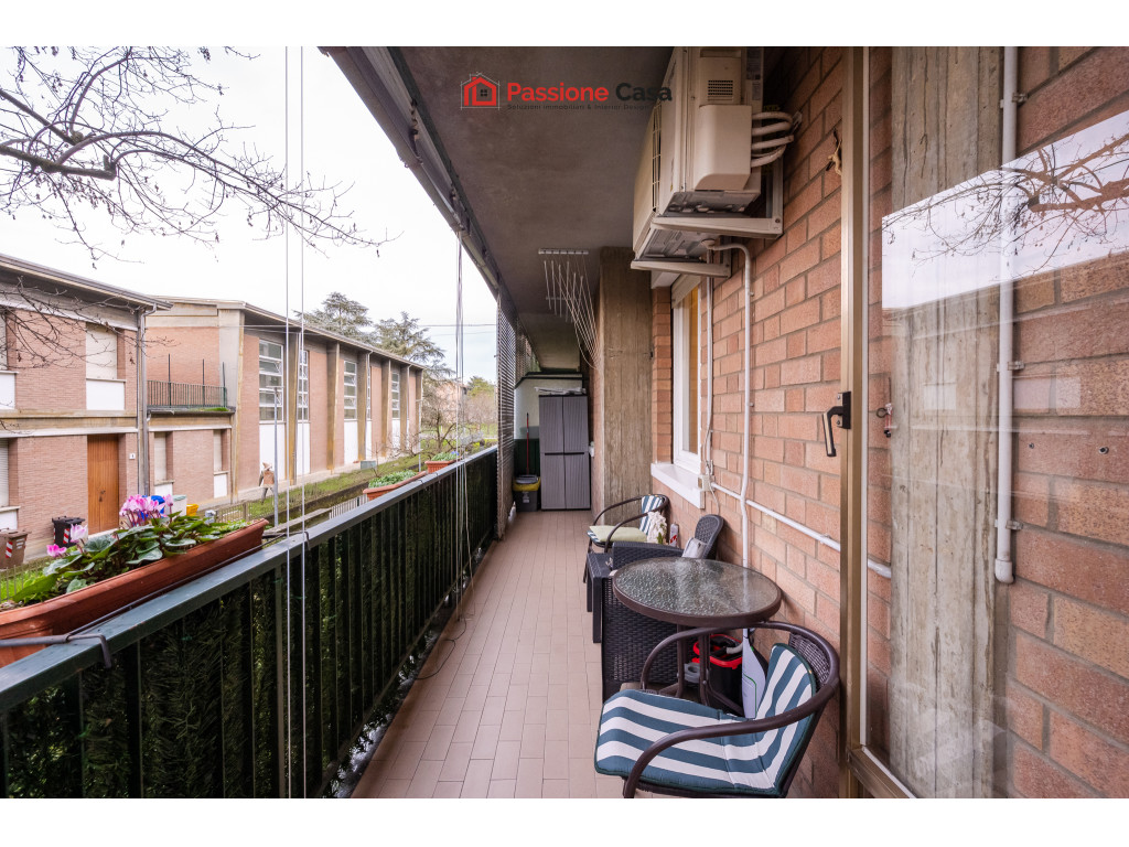 L'appartamento è composto da: comodo soggiorno con balcone, cucina abitabile, due camere ampie, un bagno finestrato con box doccia e ripostiglio.