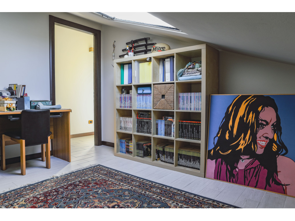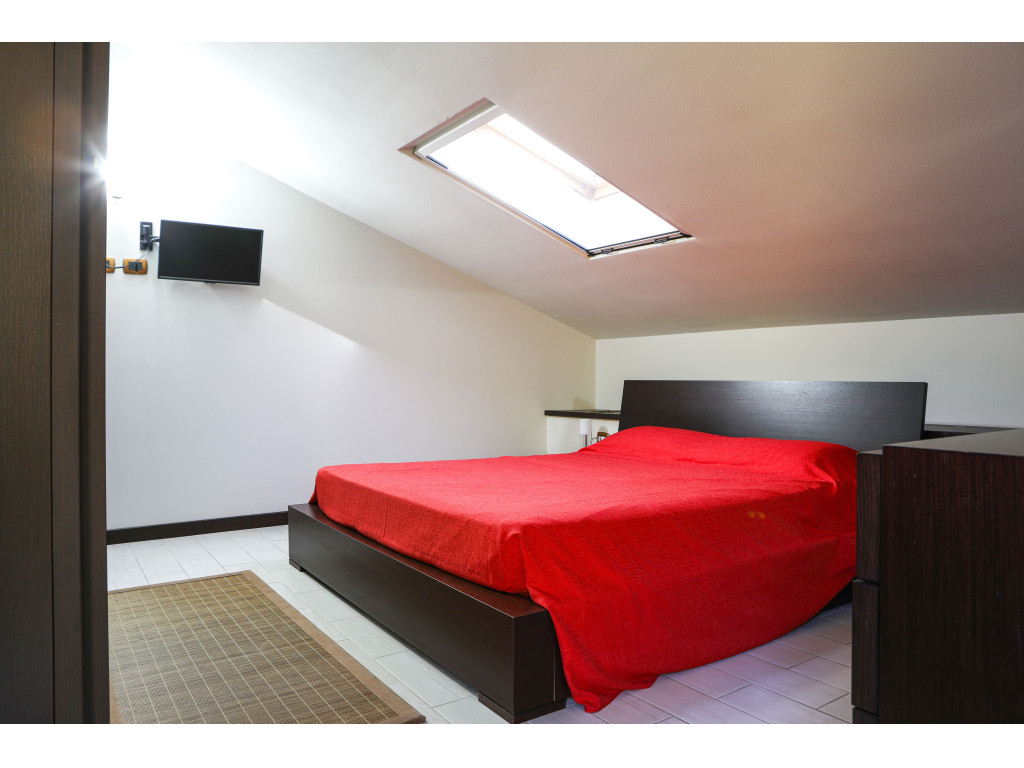 L’immobile è disposto su due livelli: al piano principale troviamo un' ampia e luminosa zona giorno con accesso diretto a un bellissimo terrazzo con vista sulla campagna, bagno di servizio, oltre a locale oggi adibito a lavanderia, perfetto anche come studio. Tramite scala interna si accede al piano superiore composto da due ampie camere da letto mansardate ed un secondo bagno a servizio della zona notte.